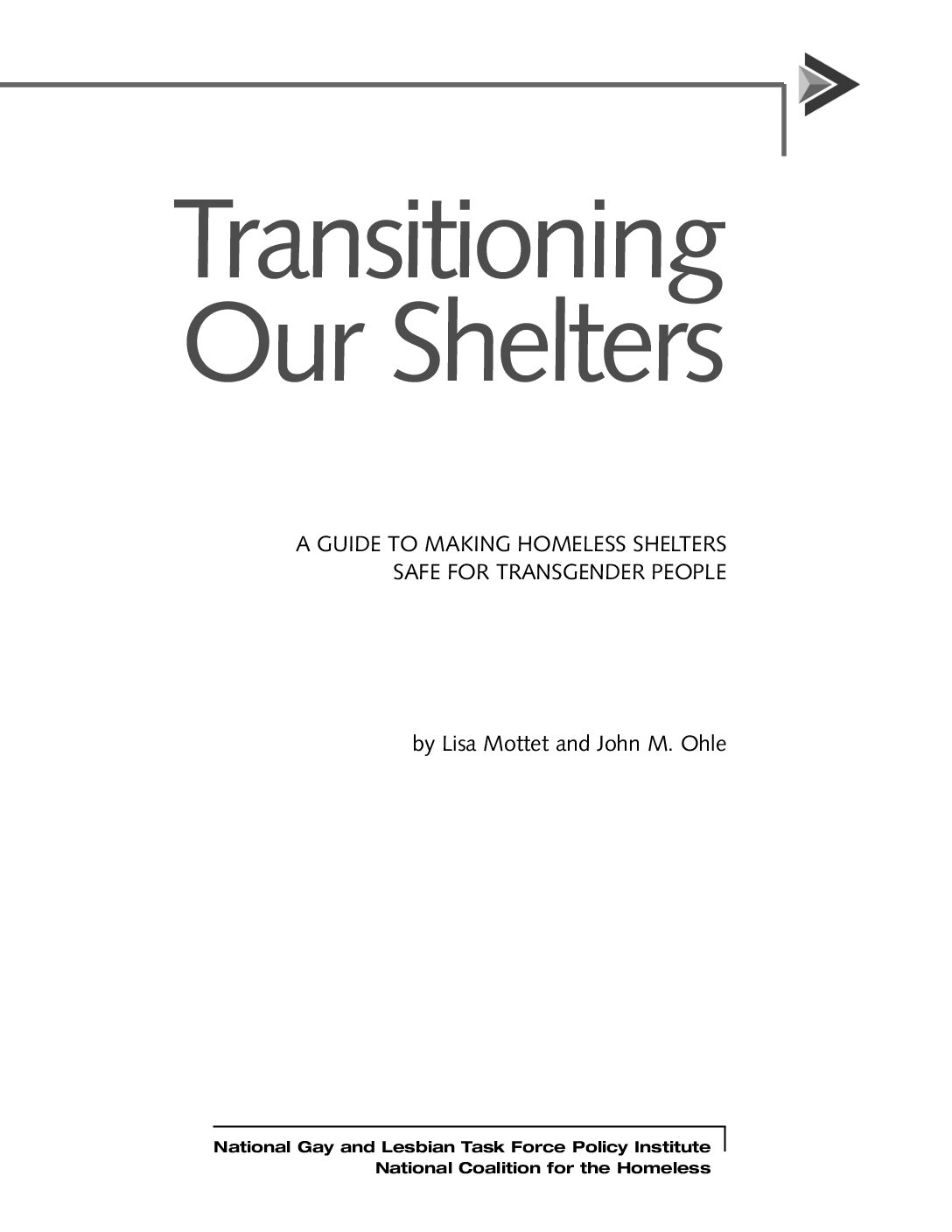 Homelessness is a crisis in the United States. With this challenge, it can be hard for shelters to figure out how to make their shelters safe for transgender people. This publication is for shelters that wish to make their shelters safe for all people by making a few minor but important policy adjustments.