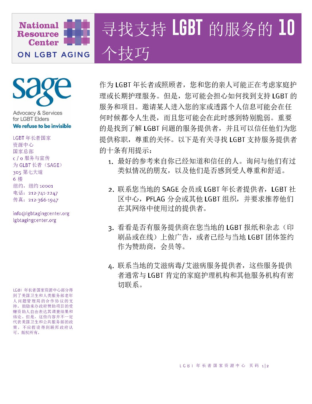 10 Tips on Finding LGBT Affirming Services - Mandarin Translation