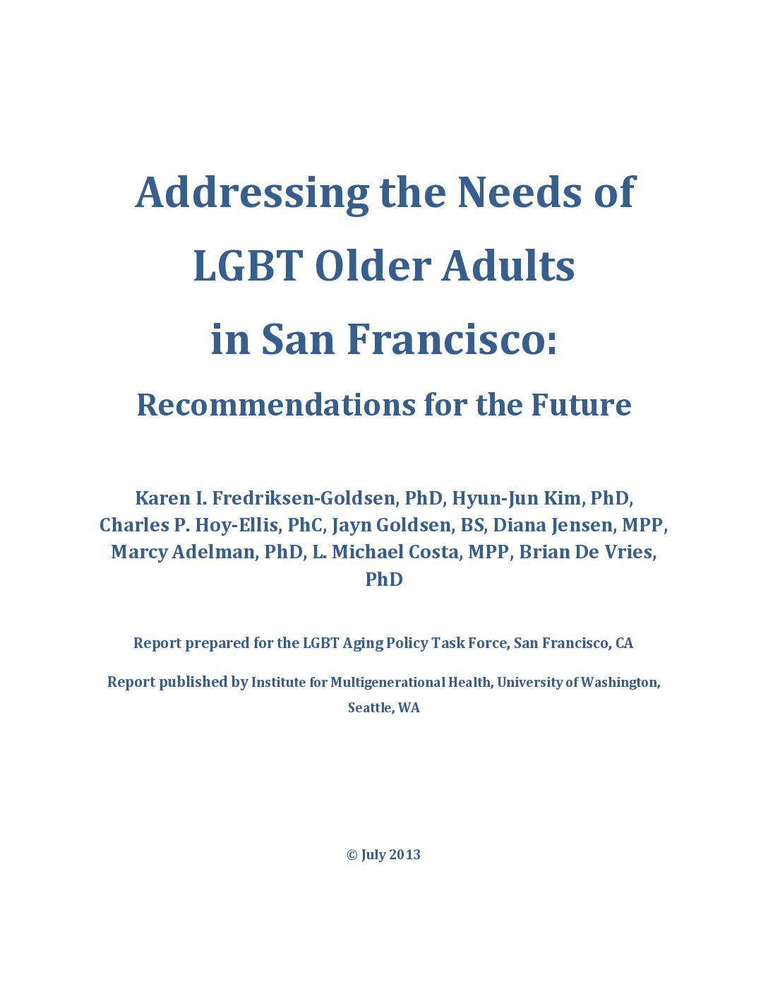 This report examines results of a survey of more than 600 LGBT older adults in San Francisco in 2013.