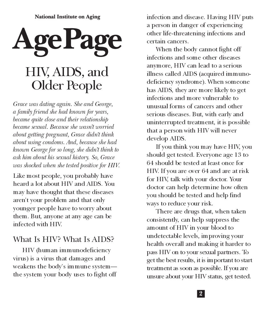 Information and resource document on HIV, AIDS, and Older People developed by the National Institute on Aging.
