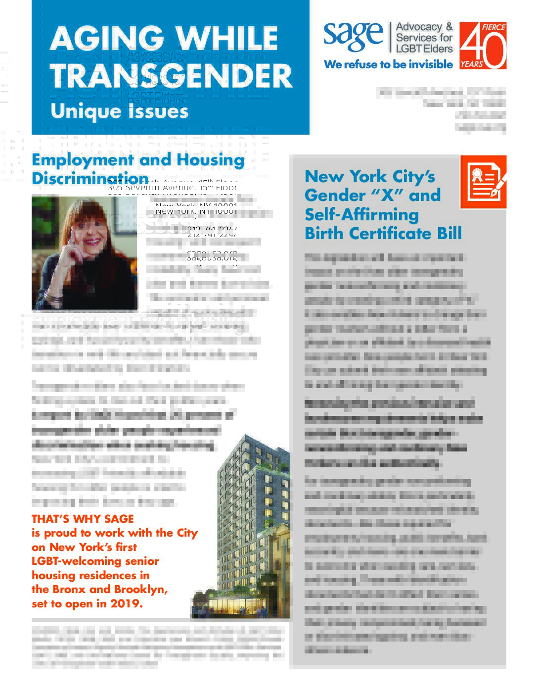 This fact sheet explores unique issues related to being transgender and aging.