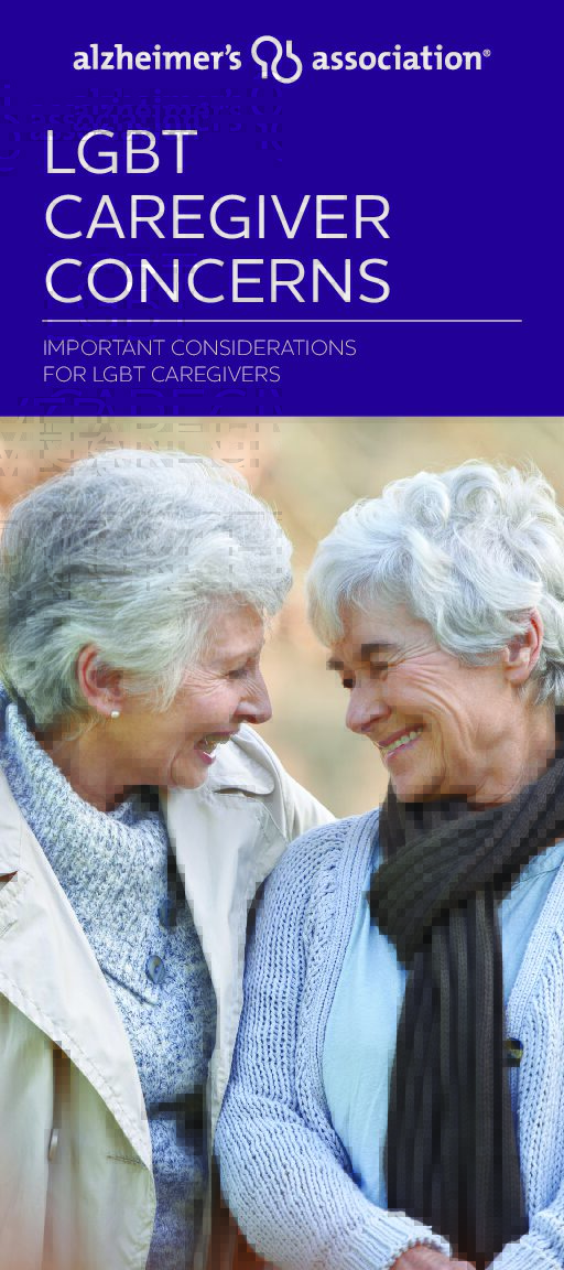 “As a caregiver for someone with Alzheimer’s disease, you will face various challenges. Some are common among all caregivers, while others may be specific to those who are lesbian, gay, bisexual or transgender (LGBT). The Alzheimer’s Association® offers support to all individuals who are facing the disease and provides assistance in finding the right community resources.”