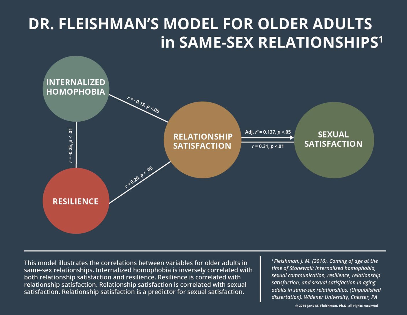 This model illustrates the correlations between variable for older adults in same-sex relationships. See Dr. Fleishman’s related Q&A interview here: