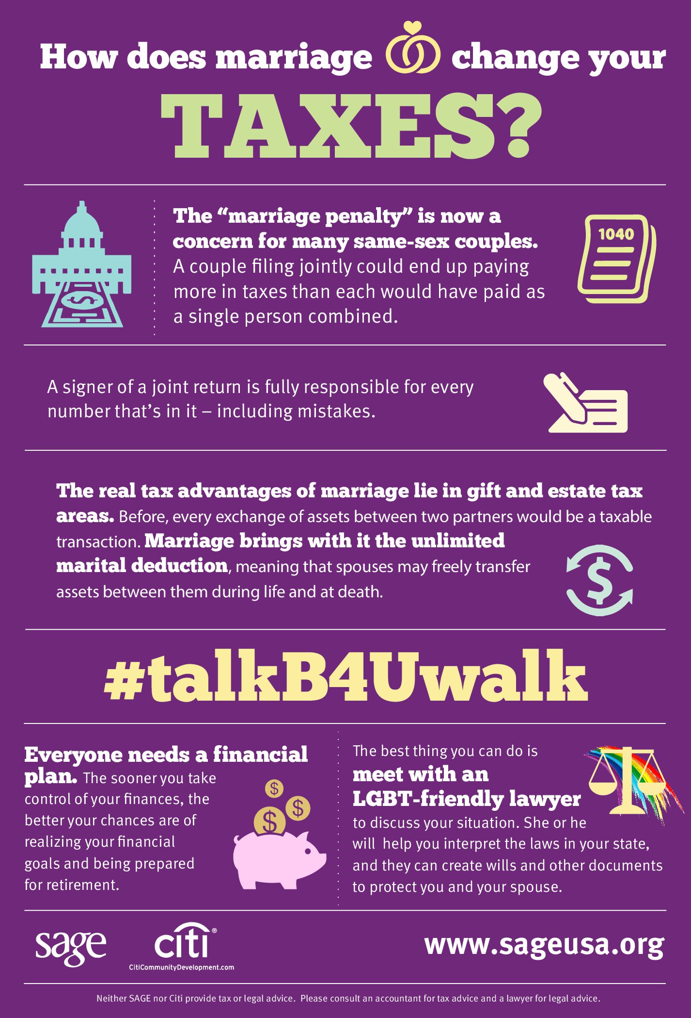 SAGE and CitiCommunity Development partnered to create a series of infographics based on the “Talk Before You Walk: Considerations for LGBT Older Couples Before Getting Married” toolkit. Learn about finances at a glance for LGBT older adults.