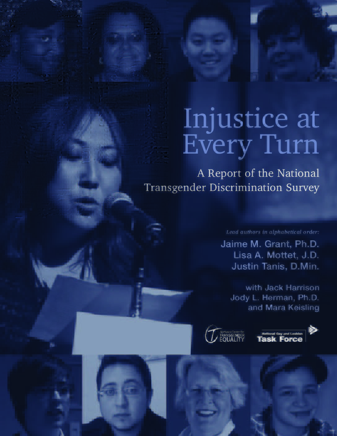 The National Gay and Lesbian Task Force and the National Center for Transgender Equality (NCTE) released a comprehensive report, Injustice at Every Turn, revealing the depth of discrimination against transgender and gender non-conforming people in a wide range of areas, including education, health care, employment, and housing.
