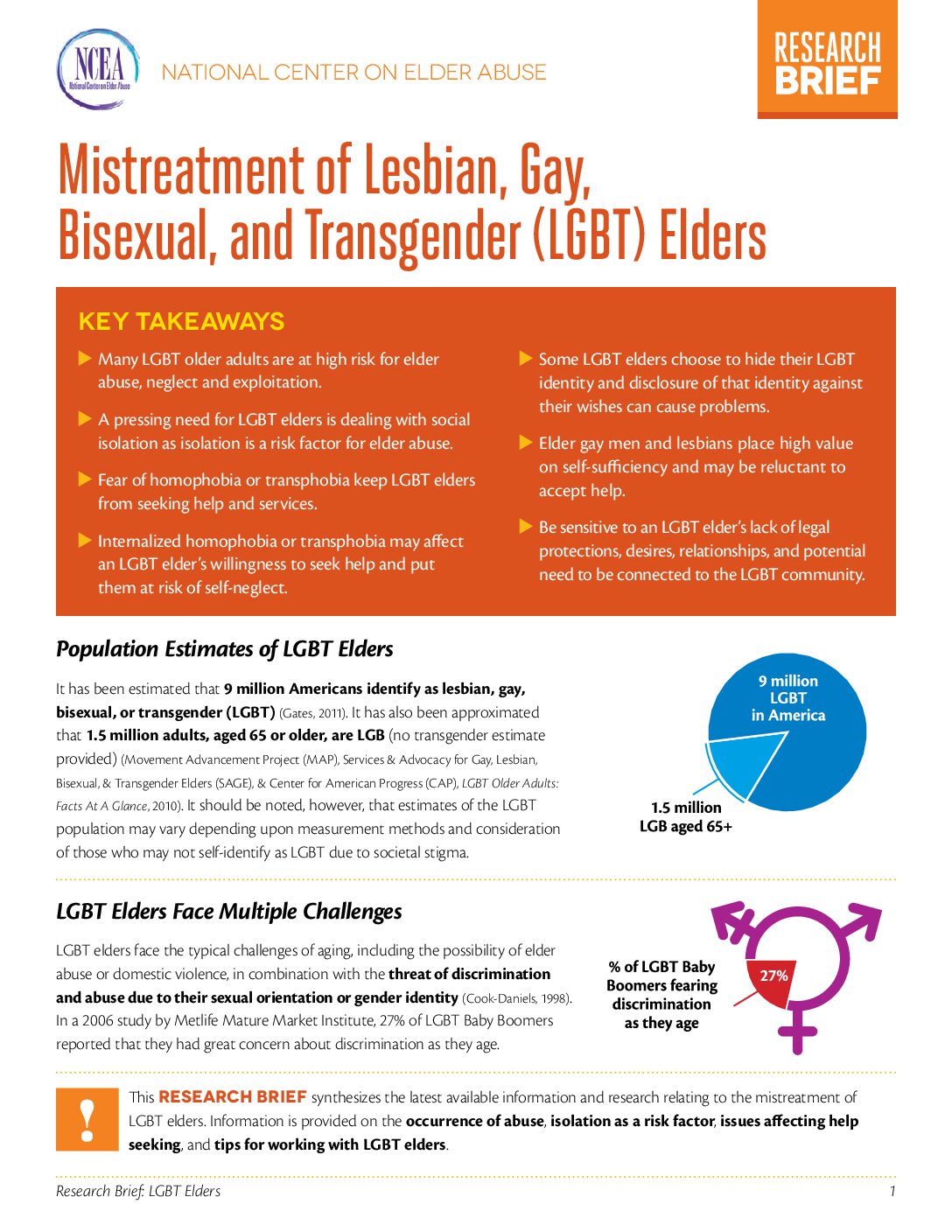 This 4-page research brief, developed by the National Center on Elder Abuse, describes information related to LGBT elder abuse.