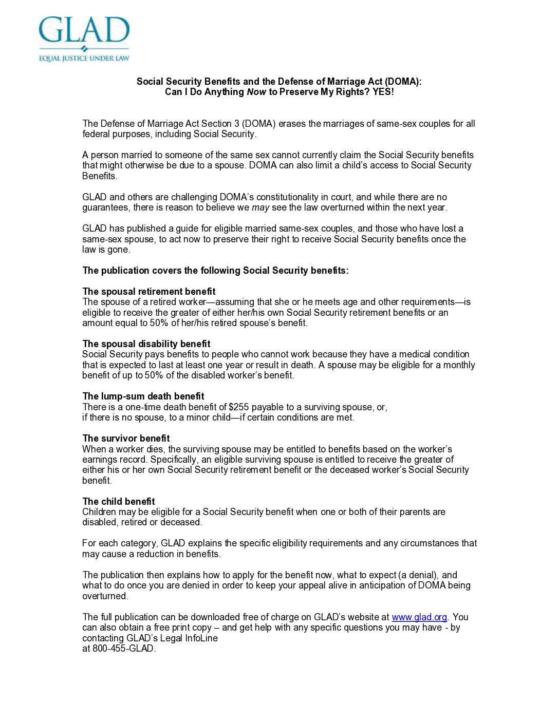 “GLAD and others are challenging DOMA’s constitutionality in court and while there are no guarantees, there is reason to believe we may see the law overturned within the next year.”
