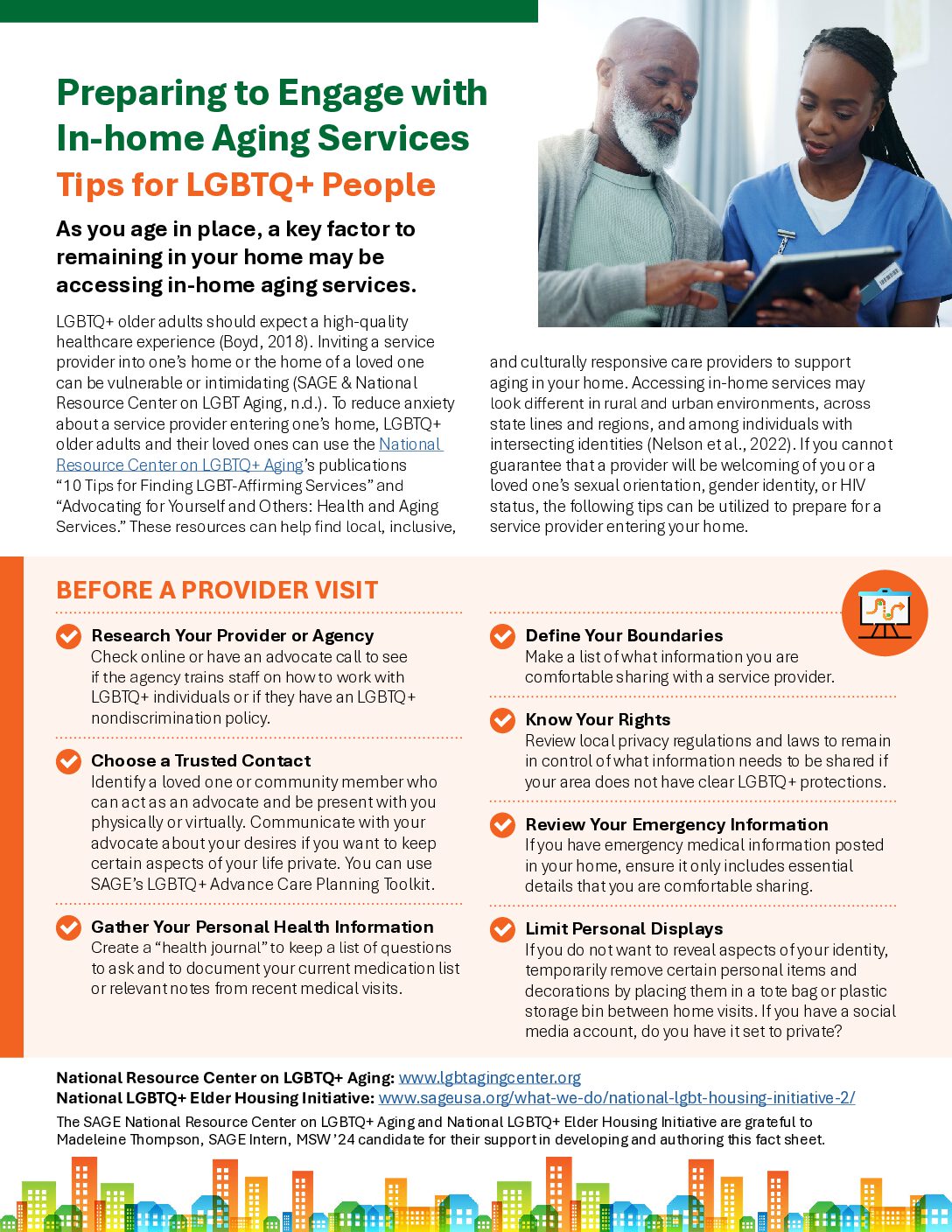 If you cannot guarantee that a provider will be welcoming of you or a loved one’s sexual orientation, gender identity, or HIV, status, the following tips can be utilized to prepare for a service provider entering your home.