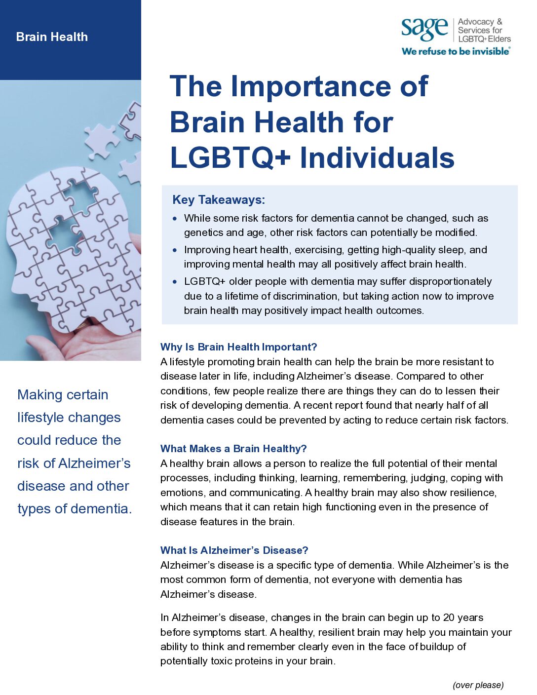 This fact sheet describes why LGBTQ+ people should care about brain health and steps we can take to improve brain health.