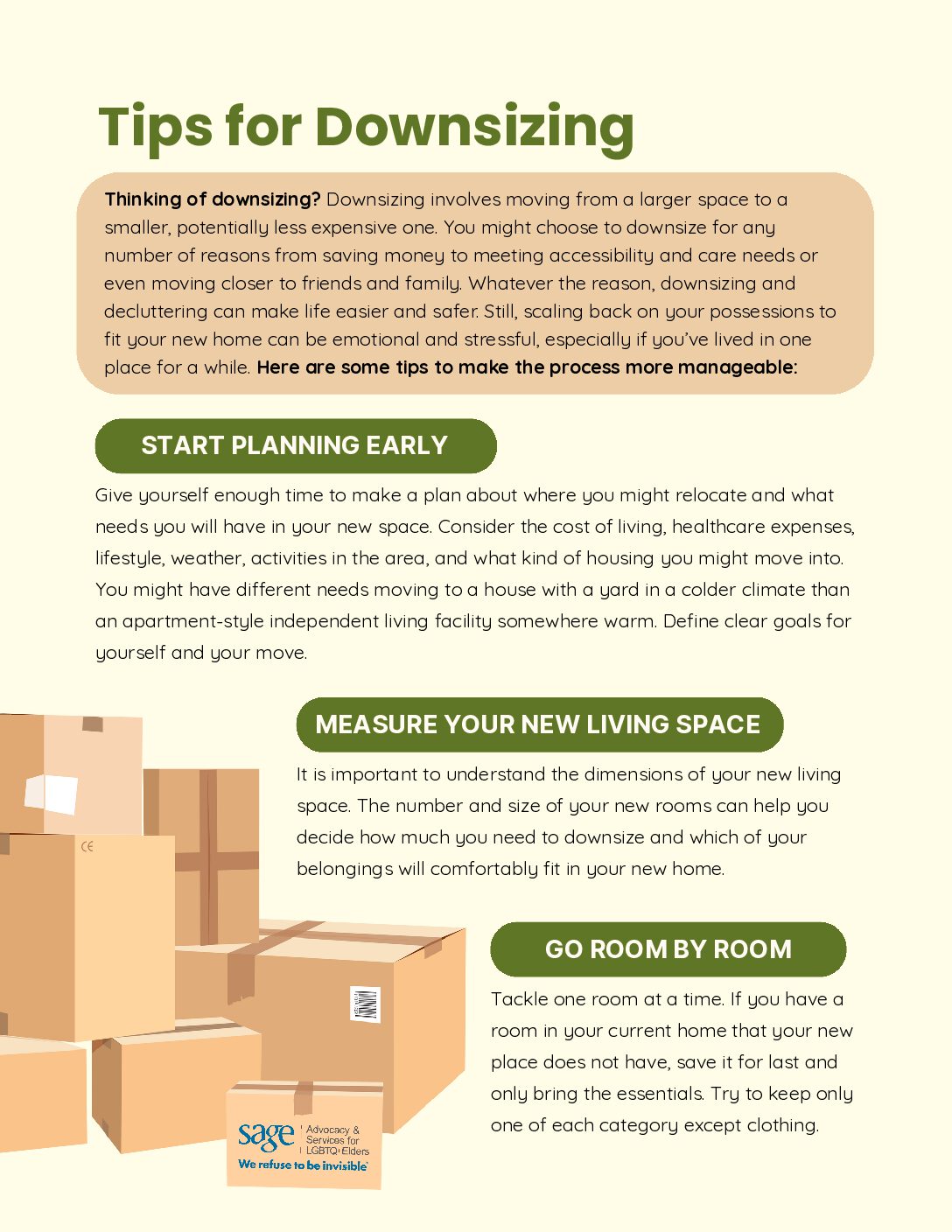 Thinking of downsizing? Downsizing involves moving from a larger space to a smaller, potentially less expensive one. You might choose to downsize for any number of reasons from saving money to meeting accessibility and care needs or even moving closer to friends and family. Whatever the reason, downsizing and decluttering can make life easier and safer. Still, scaling back on your possessions to fit your new home can be emotional and stressful, especially if you’ve lived in one place for a while. Here are some tips to make the process more manageable.