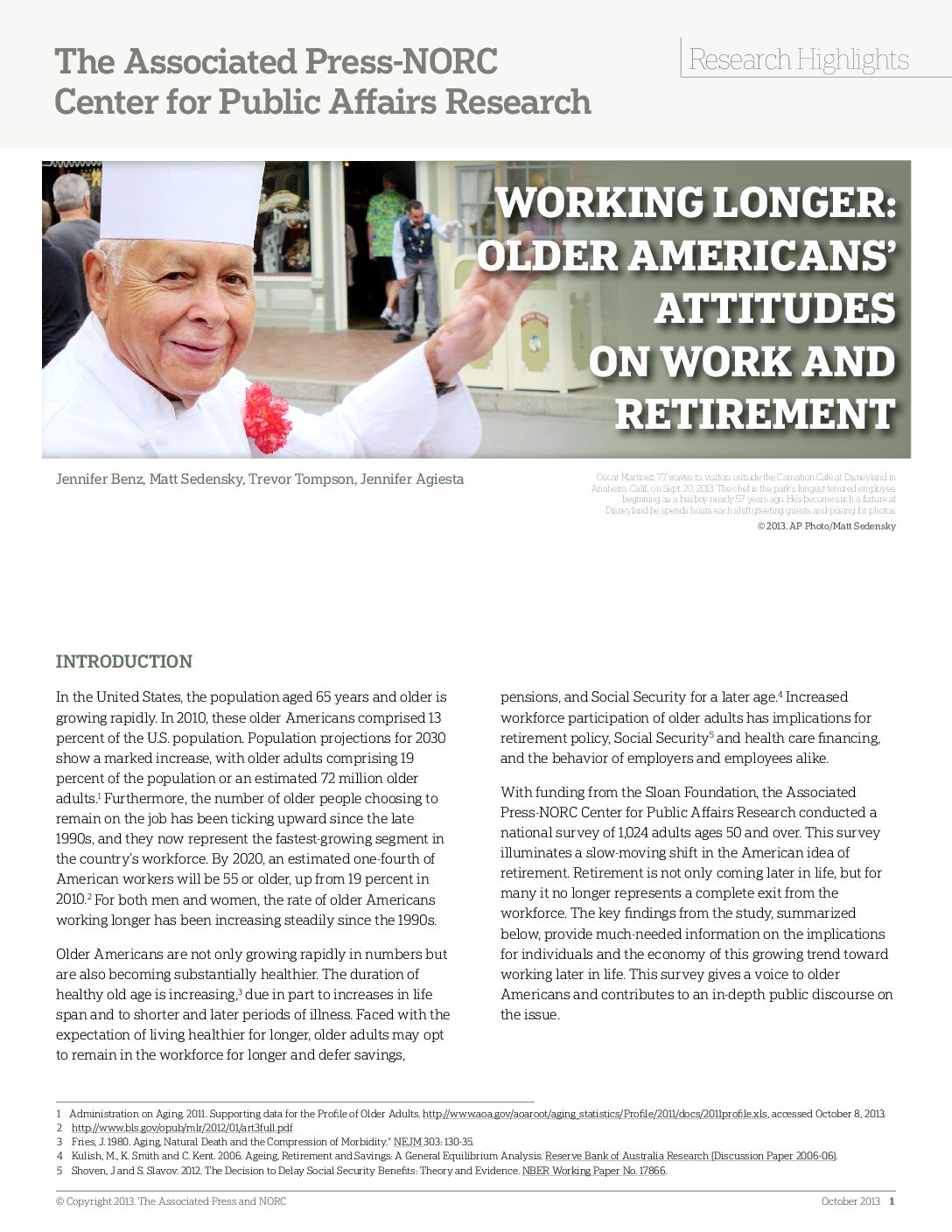 The Associated Press-NORC Center for Public Affairs Research conducted a national survey of 1,024 adults ages 50 and over. The study does not highlight LGBT workers in particular but gives an illuminating look at older Americans views on working and retirement.